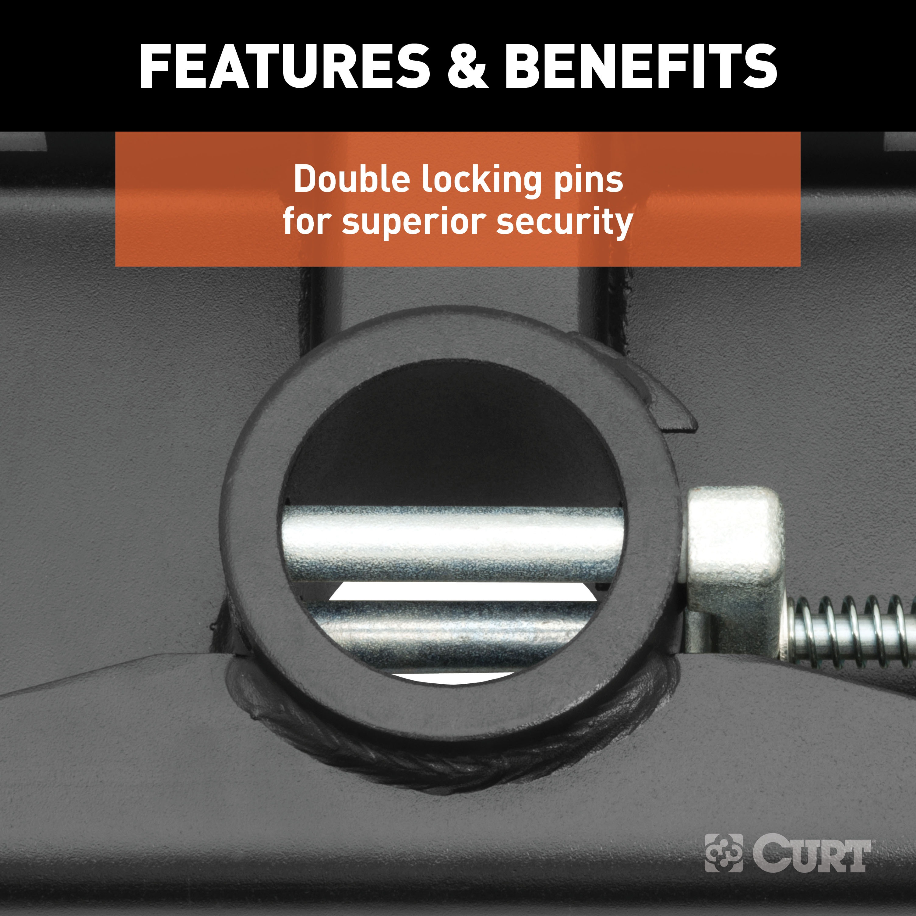 - Double locking pins for superior trailer and trailer ball security